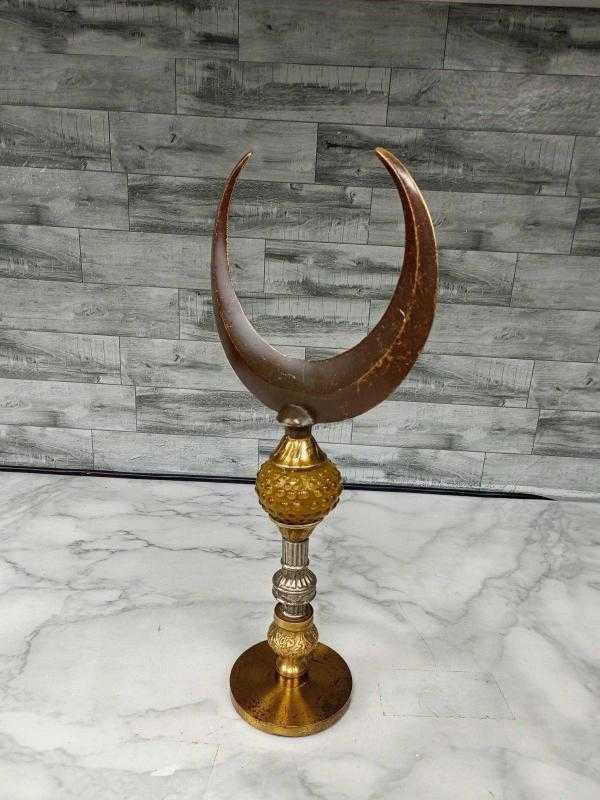 Sizlere oldukça yaşlı muazzzam işçiliği ve detayları olan pirinç detaylarla dekore edilmiş nadir Eskilerden Bronz Osmanlı İslami Hilal Alem sunuyoruz.. + + + + + + + Diğer ilanları profilimizde görebilirsiniz + + + + + + + + Menşei : Türkiye + + + + + + + Kondisyon : Çok iyi