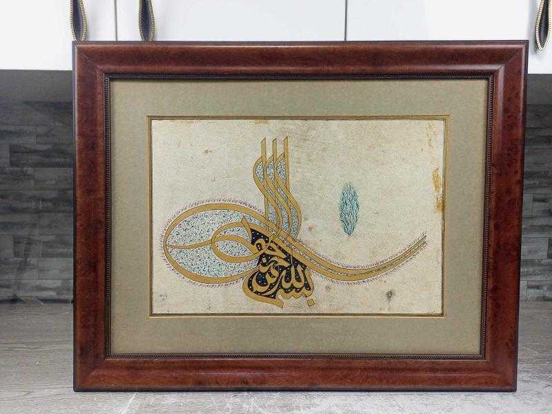Eskilerden Deri Üzerine El Boyama Osmanlı Tuğralı Tablo başlıklı antika/koleksiyon objesi Türkiye menşe’lidir. 1950-1999 arası dönemine aittir.
