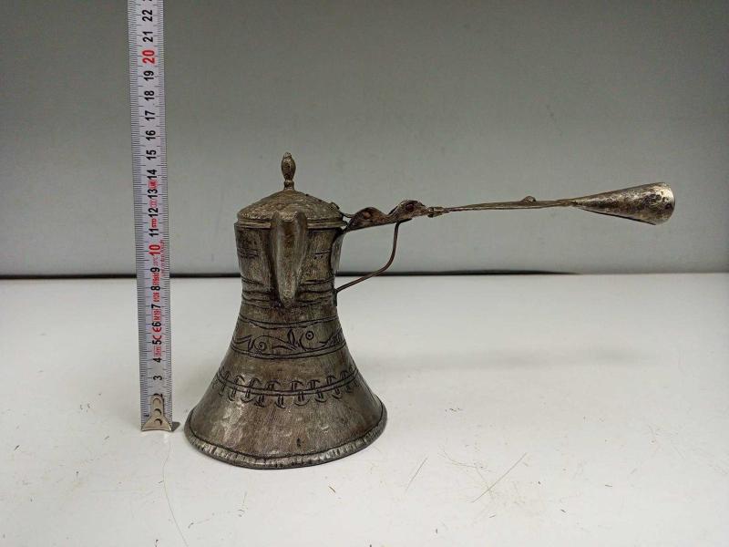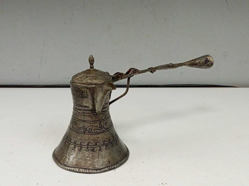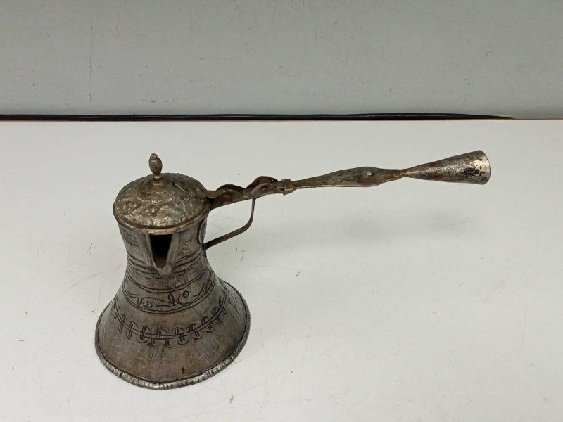 Eskilerden Katlanır Saplı Büyük Bakır Kahve Cezvesi başlıklı antika/koleksiyon objesi Türkiye menşe’lidir. Objenin ait olduğu dönem bilinmeketedir.