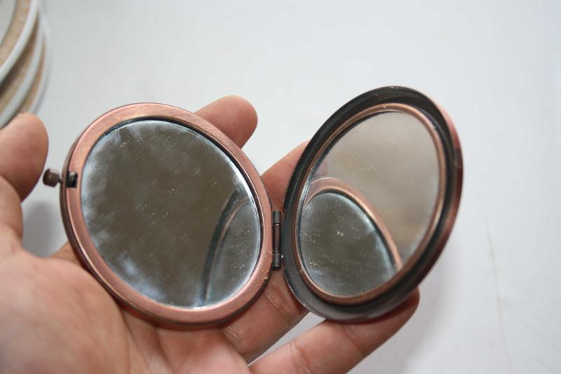 Eskilerden Metal Taşlı Cep Aynası BAKIR VİNTAGE (GETİR KOLİSİ başlıklı antika/koleksiyon objesinin menşei belirtilmemiştir. Objenin ait olduğu dönem bilinmeketedir.