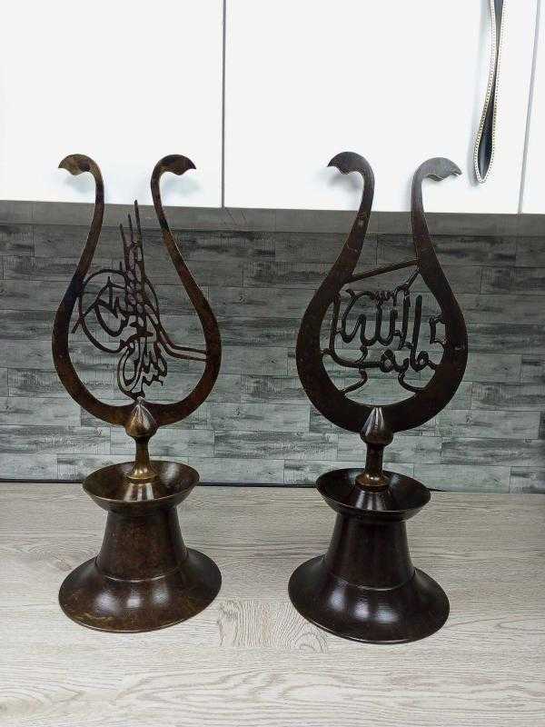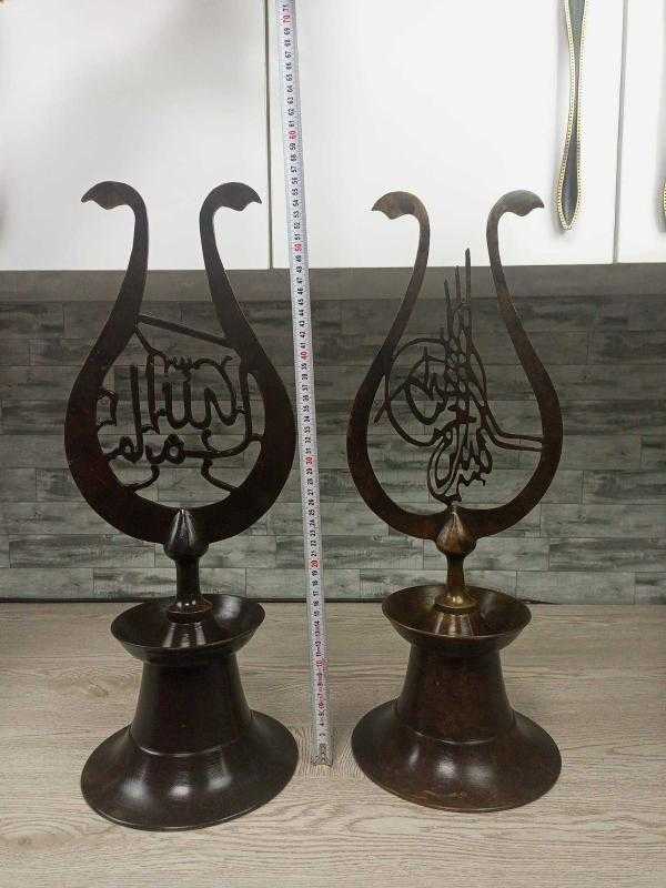 Sizlere muazzam işçiliği ve detayları olan yüksek kondisyonda Eskilerden Osmanlı Tarzda Havan Kaideli Bronz İkili Alem sunuyoruz.. + + + + + + + + Diğer ilanları profilimizde görebilirsiniz + + + + + + + + Menşei : türkiye + + + + + + + + Dönem : 1950-1999 + + + + + + + + Kondisyon : çok iyi
