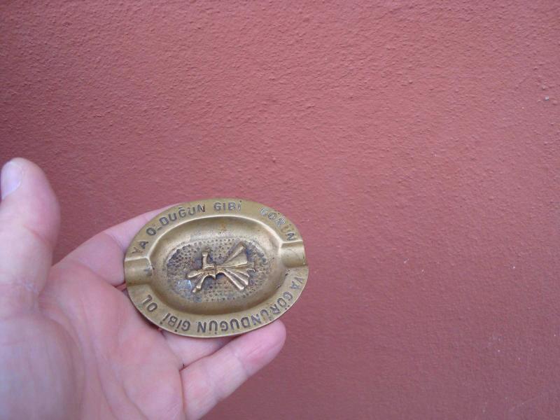 " Eskilerden " MEVLANA Temalı minik PİRİNÇ KÜL TABLASI " Ürün eski yıllardan kalma olup YÜKSEK KONDÜSYONDA 'dır ,, herhangi bir kırık,çatlak yoktur " " Etli/kalın bir Obje'dir "