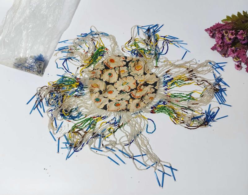 Eskilerden Şapka - Cam Boncuklu Şapka - Tepelik - Başlık - El İşi İşlemeli Cam Boncuk Tepelik - Defo başlıklı antika/koleksiyon objesinin menşei belirtilmemiştir. Objenin ait olduğu dönem bilinmeketedir.