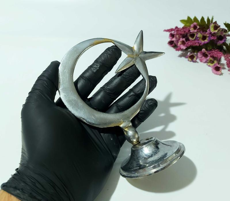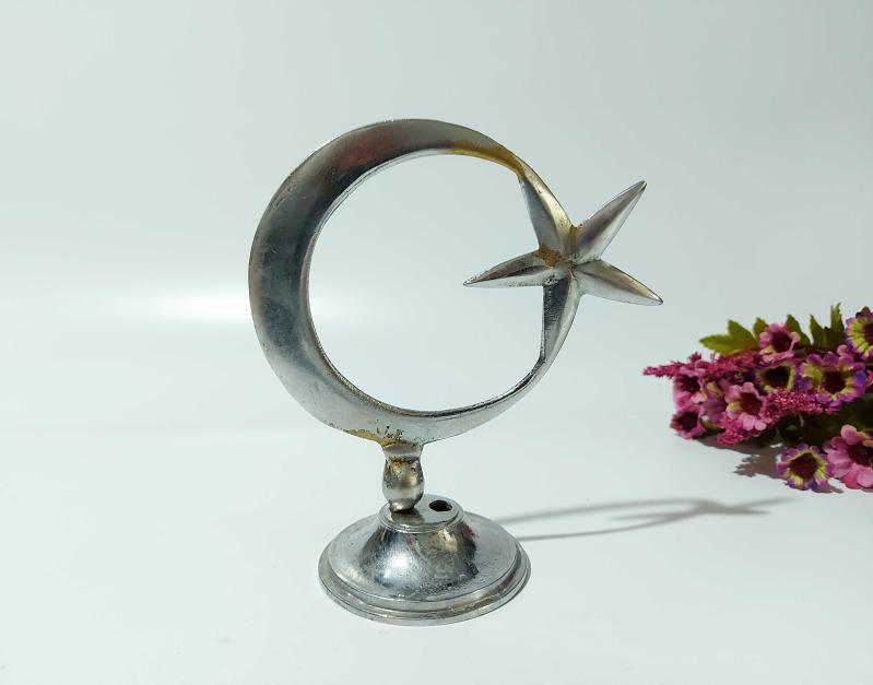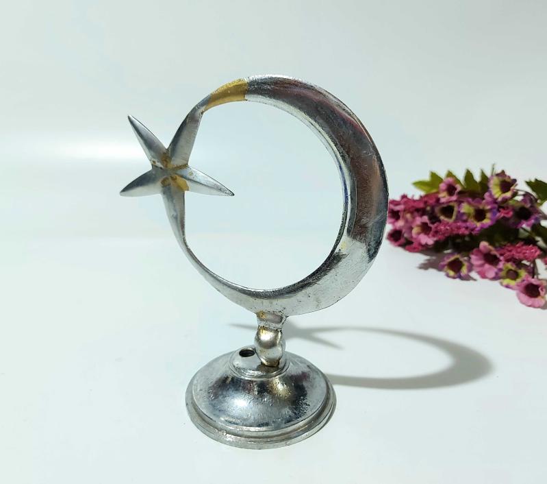 Eskilerden Gümüş Renkli metal Ay Yıldız biblo Eski Temiz Sağlam Ölçü Sonda - İade Yoktur