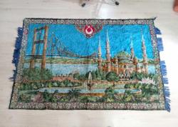 Eskilerden istanbul Boğaz köprüsü görselli duvar halisi dokuma hali başlıklı antika/koleksiyon objesi Türkiye menşe’lidir. 1950-1999 arası dönemine aittir.