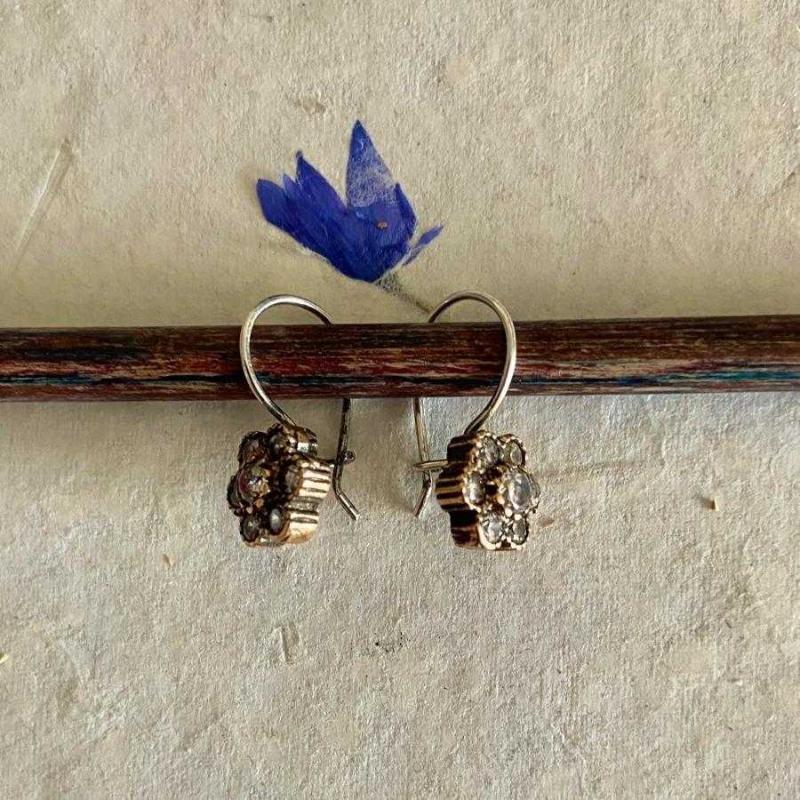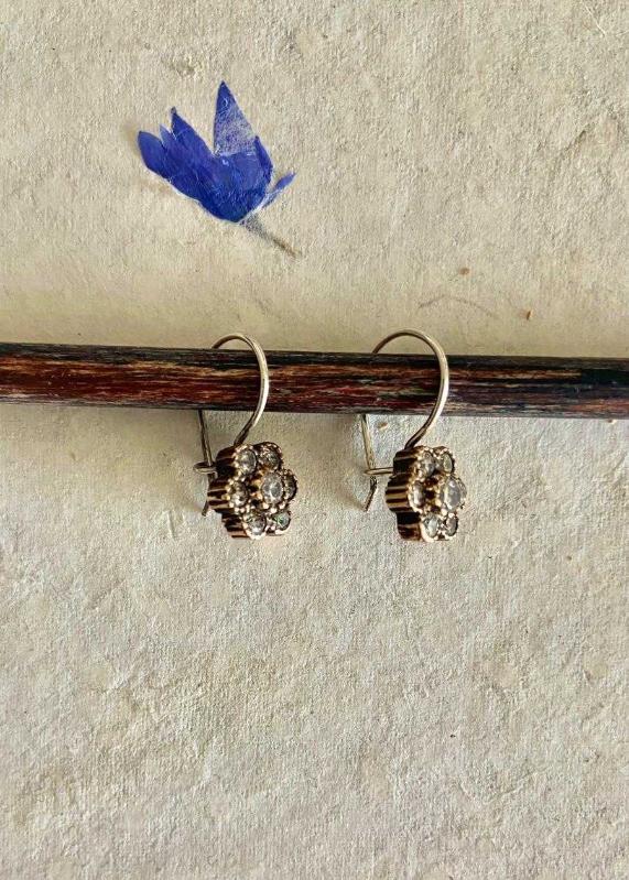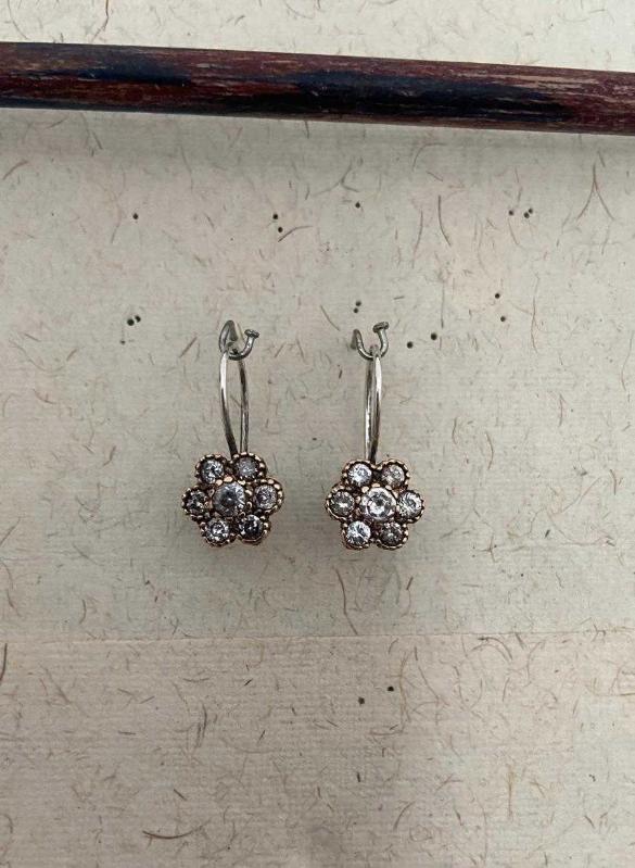 * Eskitme, altın gül küpe görselinde döküm bronz küpe. * Etlik kısmı gümüş (alerji yapmaz) diğer kısımları bronzdur . * Taşı elmas görünümüne camdır. * Zevkle kullanacağınız bir model