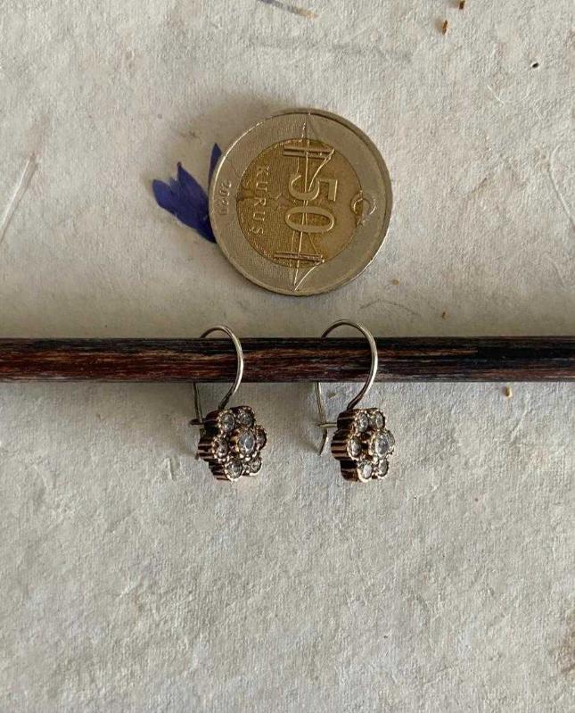 Eskitme, altın küpe görselinde küpe. başlıklı antika/koleksiyon objesi Türkiye menşe’lidir. 2000 ve sonrası dönemine aittir.
