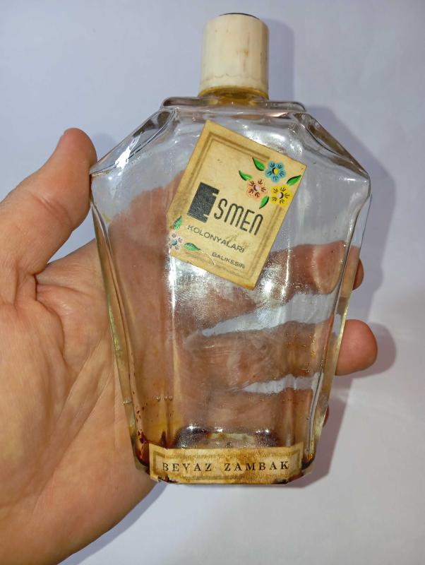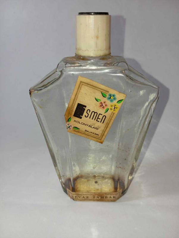 Esmen Beyaz Zambak Kolonyası Şişesi boş başlıklı antika/koleksiyon objesi Türkiye menşe’lidir. Objenin ait olduğu dönem bilinmeketedir.