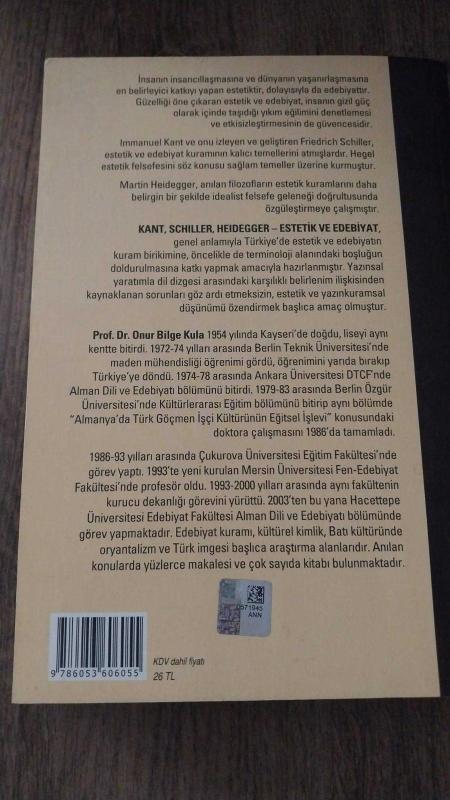 Estetik ve Edebiyat; Kant, Schiller, Heidegger, Onur Bilge Kula tarafından kaleme alınmıştır. Kitap 2012 yılında Türkiye İş Bankası Kültür Yayınları tarafından 9786053606055 ISBN kodu ile yayınlanmıştır. Satışta olan kitap, yayınevinin 1. baskısıdır. 424 sayfadır. Estetik ve Edebiyat; Kant, Schiller, Heidegger adlı eser Türkçe dilindedir.