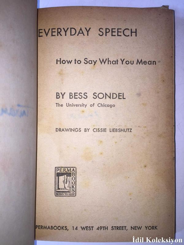 Everyday Speech : How to Say What You Mean - Bess Sondel - Perma Books - İngilizce Kitap (Günlük Konuşma: Ne Demek İstediğinizi Nasıl Söylersiniz?), Bess Sondel tarafından kaleme alınmıştır. Eser - editörlüğünde hazırlanmıştır. Kitap 1950 yılında Perma Books tarafından [New York] yayınlanmıştır. Bu baskının çevirisi - tarafından yapılmıştır. 190 sayfadır. Everyday Speech : How to Say What You Mean - Bess Sondel - Perma Books - İngilizce Kitap (Günlük Konuşma: Ne Demek İstediğinizi Nasıl Söylersiniz?) adlı eser İngilizce dilindedir.