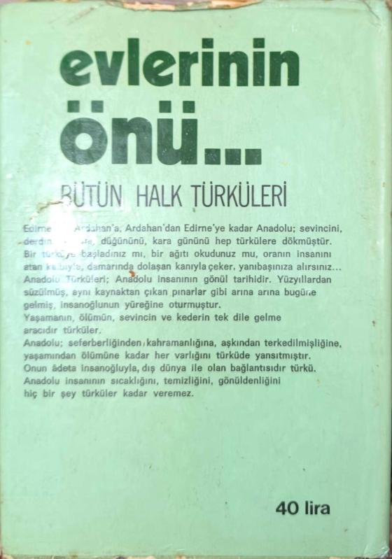 Evlerinin Önü. Halk Türküleri (Ciltli - Şömizli) adlı eser, Kitap > Sanat > Müzik > Diğer kategorisinde İkinci El olarak satıştadır.
