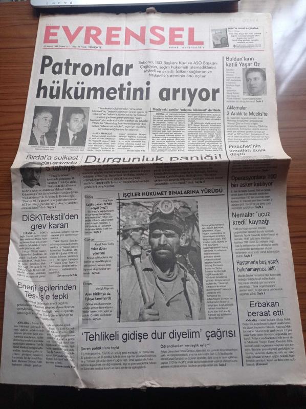 Evrensel Gazetesi - 27 Kasım 1998 - Avrupalı Yayıncılar Türkiye Ligi'ne Göz Dikti - Patronlar Hükümetini Arıyor - Sakıp Sabancı - Akın Birdala Suikast Davasında 5 Tahliye - Savaş Buldan'ın Katili Yaşar Öz - Necmettin Erbakan Beraat Etti - Pinochet'in Umutları Suya Düştü - Malvarlığı Soruşturma Komisyonu - Mesut Yılmaz - Tansu Çiller adlı eser Türkçe dilindedir.