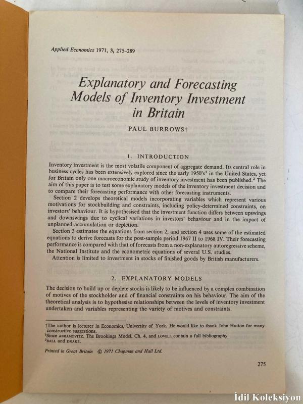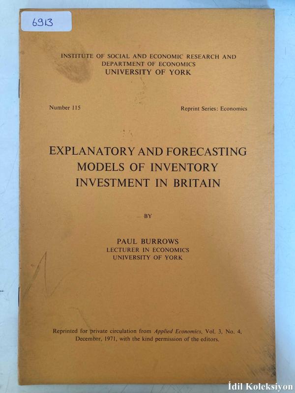 Explanatory and Forecasting Models Of Inventory Investment in Britain - Paul Burrows - Number 115 - Institute Of Social and Economic Research and Department of Economics University of York - İngilizce Kitap (Britanya'da Envanter Yatırımının Açıklayıcı ve Tahmin Modelleri)