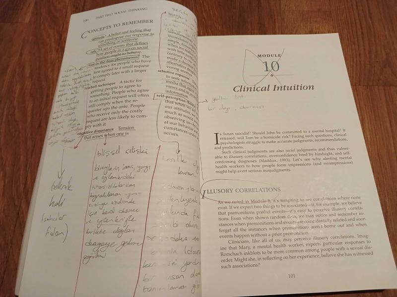 Özellikle ilk 3 bölüme işaretlemeler yapılmış, notlar alınmış. Genel olarak temiz ve diri bir kitap.