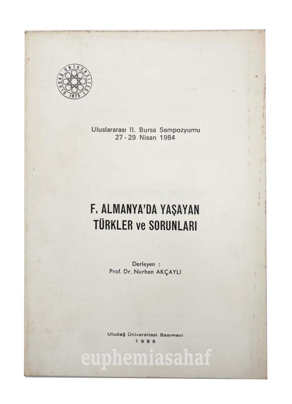 Özgün karton kapağında, çok temiz durumda, 24 x 16 cm, 113 sayfa, ''F. Almanya'da yaşayan Türkler ve sorunları. Uluslararası 11. Bursa Sempozyumu 27-29 Nisan 1984'' Haz:NURHAN AKÇAYLI, , Uludağ Üniversitesi Yayınları, Bursa, 1986