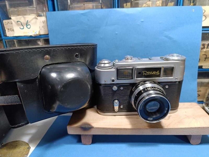 F11-----ÇANTALI REVUE 4 ANALOG FOTOĞRAG MAKİNASI başlıklı antika/koleksiyon objesinin menşei belirtilmemiştir. Objenin ait olduğu dönem bilinmeketedir.