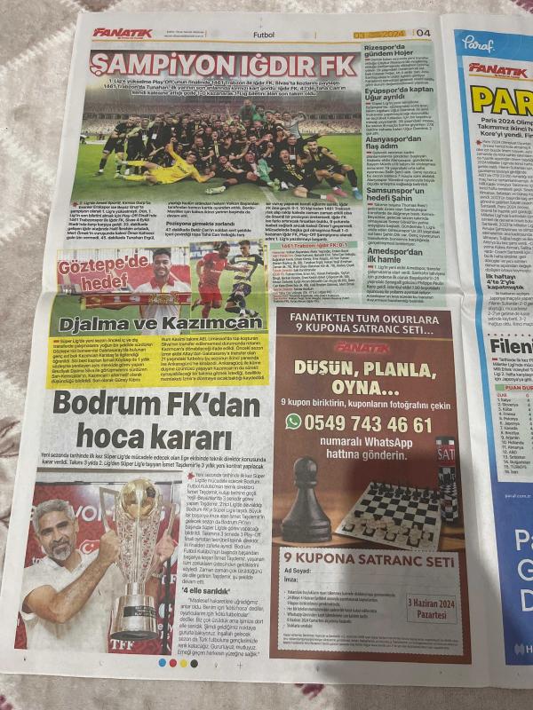 FANATİK SPOR GAZETESİ -3 Haziran 2024-Kadıköy-Jose mourinho- wembley- Special One- paulo dybla- matt hummels- tarihi bir adım-Ali Koç-Iğdır FK- kazımcan- djalma- bodrum FK-Alanyaspor-Samsunspor-Eyüpspor-Rizespor-Amedspor-filenin efeleri-filenin Sultanları-Esra Yıldız- anthony nwakaeme-Marco Reus-Arda Güler-Salih Uçan-Amrabat-erencan yardımcı-Angelina Zaha adlı eser, Kitap > Süreli Yayınlar > Gazeteler > Türkiye > Genel > Günlük kategorisinde İkinci El olarak satıştadır.