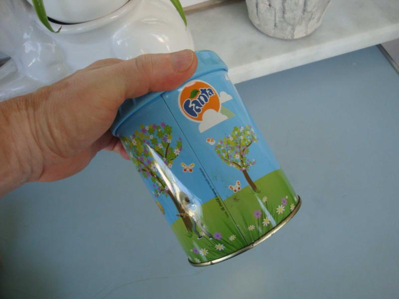 FANTA ( şişe Kapağı Formunda Kapaklı ) KOLEKSİYONLUK TENEKE KUTU " Ürün HATASIZ durumdadır " Koleksiyonluk veya Kullanımlık .. Yükseklik : 13,5 cm Gövde Çap : 10 cm.