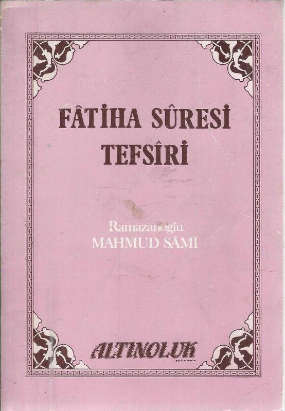 FATİHA SURESİ TEFSİRİ, RAMAZANOĞLU MAHMUD SAMİ tarafından kaleme alınmıştır. Kitap 1987 yılında ERKAM YAYINLARI tarafından [İSTANBUL] yayınlanmıştır. 53 sayfadır. FATİHA SURESİ TEFSİRİ adlı eser Türkçe dilindedir.
