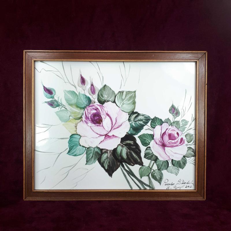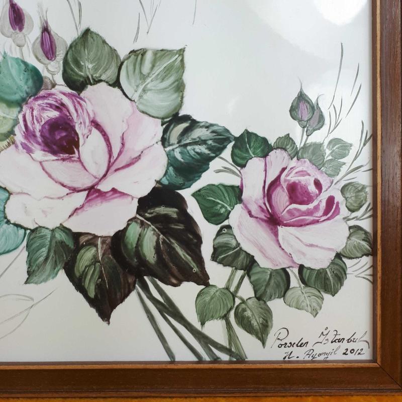 FAYANS ÜZERİNE İMZALI PEMBE GÜLLER RESİM , AHŞAP ÇERÇEVELİ, 5 gün önce kitantik’te satışa sunulmuştur.