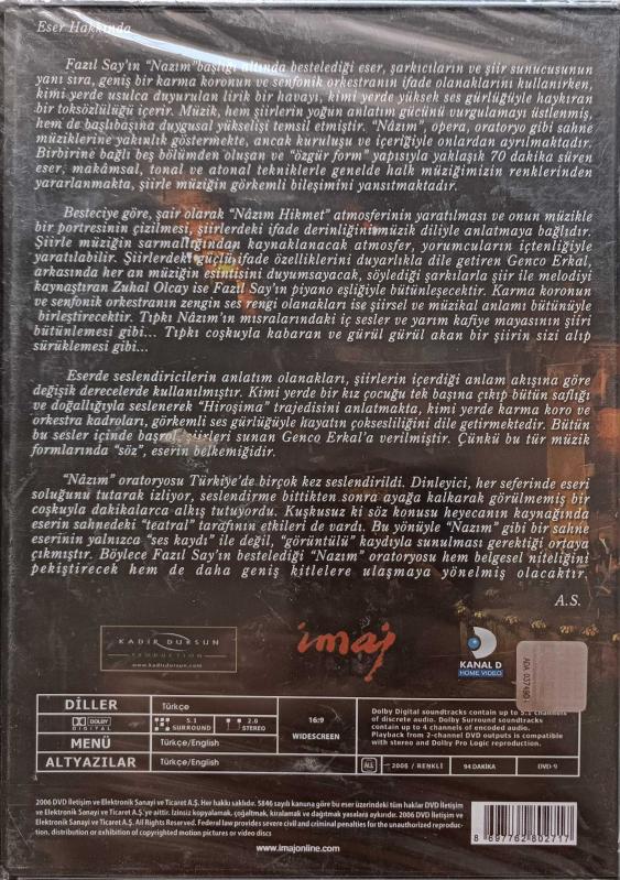 FAZIL SAY NAZIM SIFIR PAKETLİ DVD 2.EL FİLM ORJİNAL DVD ( 19628, en son 1 yıl önce güncellenmiştir.