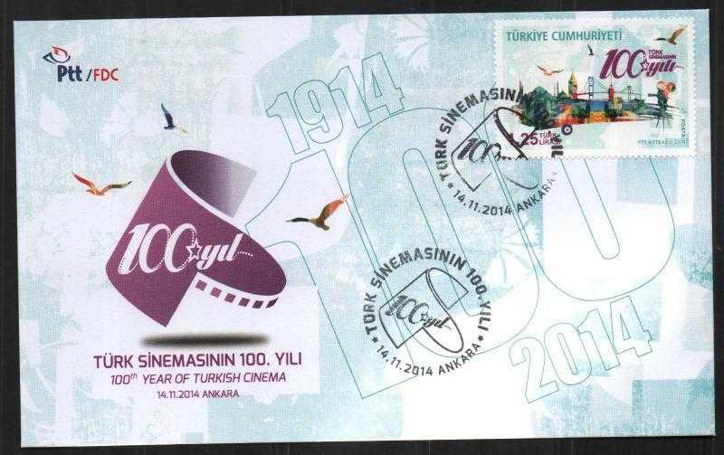 FDC.855 2014 TÜRK SİNEMASININ 100.YILI FDC, 3 yıl önce satışa sunulmuştur.