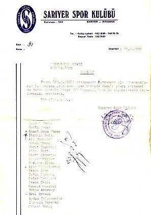 ** SARIYER SPOR KULÜBÜ ** Fenerbahçe Stadı Müdürlüğü'ne yazılmış,1988 tarihli maç yazısıdır... A4 ebadında ve gayet temiz durumdadır...