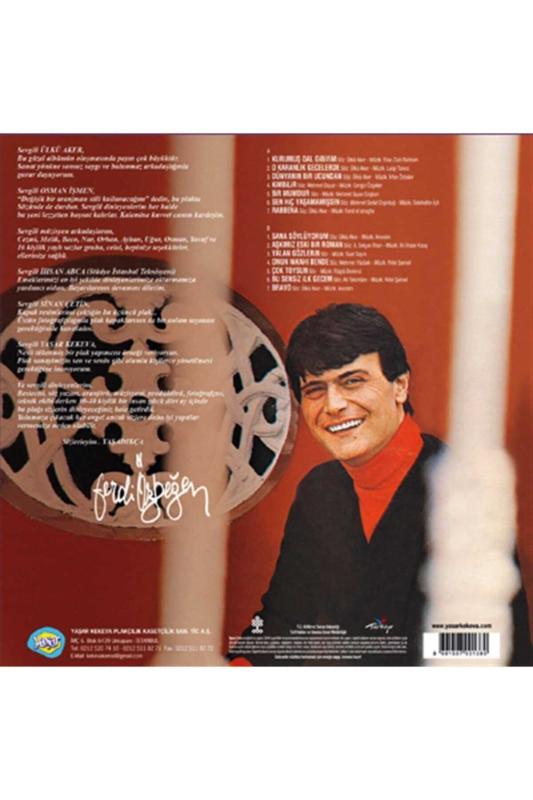 Ferdi Özbeğen - Yaşadıkça Plak Fiyatı Ücret Bilgisi. A Bölümü Eserleri : Kurumuş Dal Gibiyim; Söz: Ülkü Aker Müzik:Elias Zaid Rahbani; Karanlık Gecelerde; Söz: Ülkü Aker Müzik:Luigi Tanco; Dünyanın Bir Ucundan; Söz:Ülkü Aker Müzik: İrfan Özbakır; Kimbilir; Söz: Mehmet Duyar Müzik:Cengiz Özşeker; Bir Mumdur; Söz:M.Gıyas Çoşkun Müzik:Mehmet Gıyas Çoşkun; Sen Hiç Yaşamamıssın; Söz:Mehmet Sedat Ergintuğ Müzik:Selahattin İçli; Rabbena; Söz:Ülkü Aker Müzik:Farid El Atraçhe; B Bölümü Eserleri : Sana Söylüyorum; Müzik:Anonim Söz : Ülkü Aker; Aşkımız Eski Bir Roman; Müzik:Ali İhsan Kısaç Söz:A.Selçuk İlkan; Yalan Gözlerin; Müzik:Suat Sayın Söz: Suat Sayın; Onun Nikahı Bende; Müzik:Rıfat Şanlıel Söz:Mehmet Yüzüak; Çok Toysun; Müzik: Rüştü Demirci Söz: Rüştü Demirci; Bu Sensiz İlk Gecem; Müzik:Rıfat Şanlıel Söz:Ali Tekintüre; Bravo; Müzik: Anonim Söz: Ülkü Aker; ; Format: Long Play (LP) Devir Hızı: 33 Devir Marka: Yaşar Plak Model Kodu: 8691507001380T Barkod: 8691507001380T