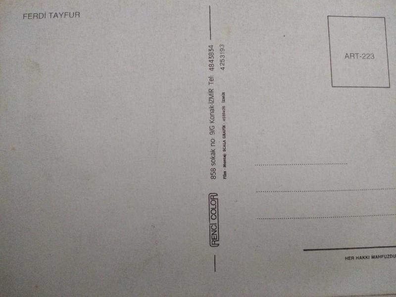 FERDİ TAYFUR KARTPOSTALI,ARKASINA YAZILMAMIŞ,RENKLİ, 11,5 X 16 CM EBADINDA, en son 8 ay önce güncellenmiştir.