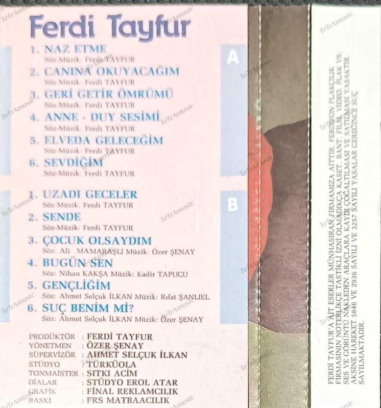 FERDİ TAYFUR NAZ ETME CANINA OKUYACAĞIM başlıklı ürün, Efemera, Müzik, Sinema > Müzik, Plak, Kaset, CD > Müzik Kaseti > Yerli Müzik Kaseti kategorisi altında İkinci El olarak satılmaktadır.