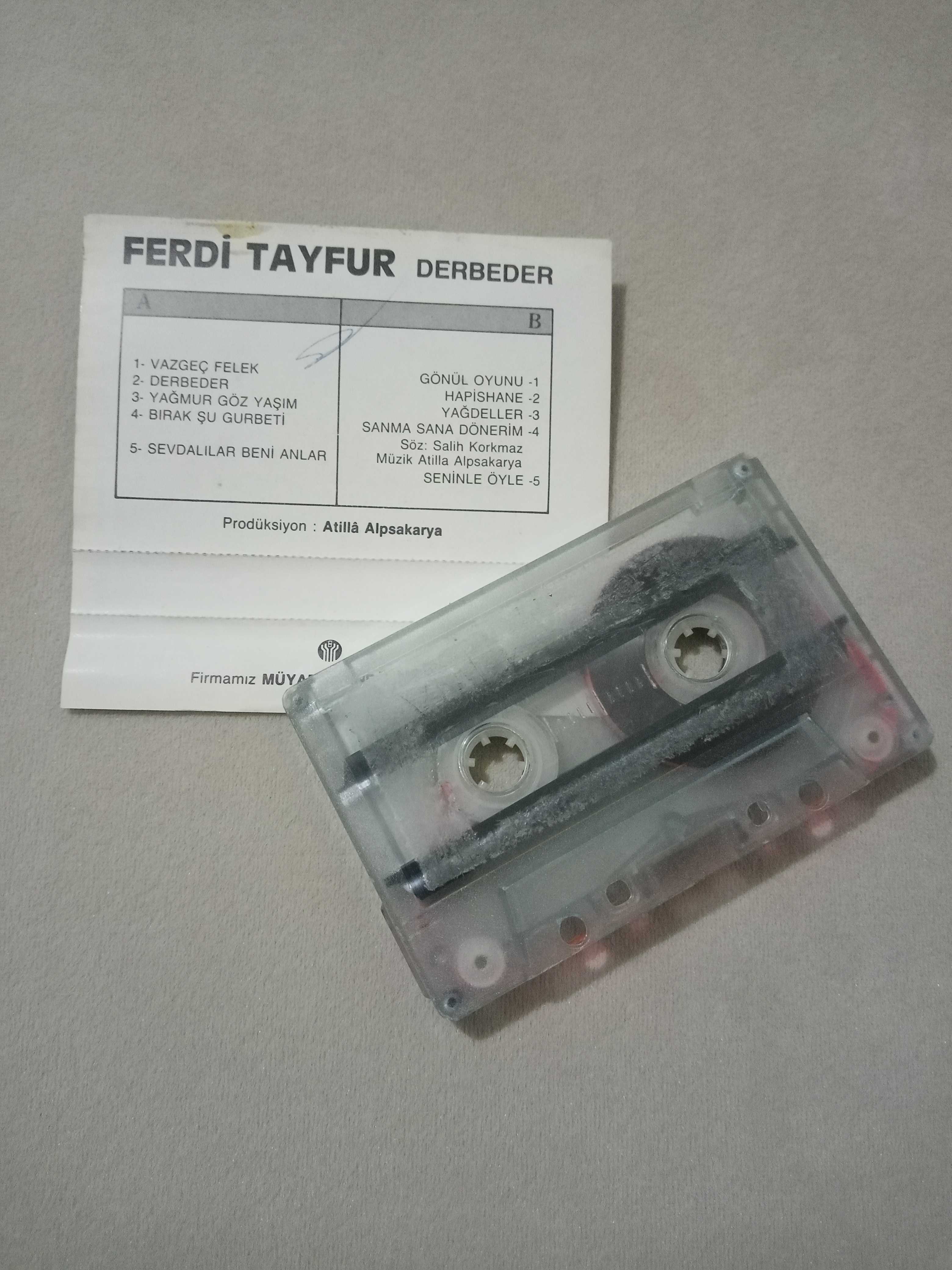 Resimlerde görüldüğü gibidir İade yoktur. Toplu satıştır. Batan güneş kaset üstündeki yazılar çoğu silinmiş. Derbeder ve merak etme sen kağıt baskı resimlerde görüldüğü gibidir. Uzelli baskıları kaset üstündeki yazılar silinmesin diye şeffaf bant yapıştırmıştım 1995ten bugüne kendi arşivimdir. Bazılarının sırt kısmında albüm adı yazılıdır. Sen de mi Leyla kartonet hafif yıpranmış. Ferdi Tayfur 3 kasetin kartoneti matbaa.