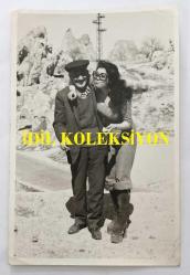 FERİ CANSEL'İN ORİJİNAL FOTOĞRAFI - 18 x 12 cm EBADINDA - FERİ CANSEL KÖYLÜ KOSTÜMLÜ BİR BEYEFENDİYE SARILIRKEN