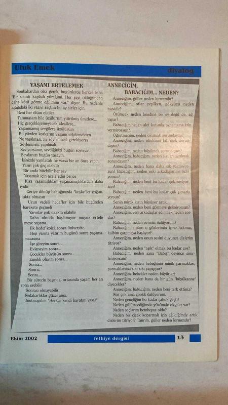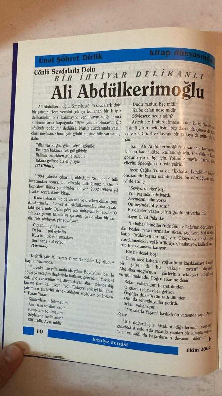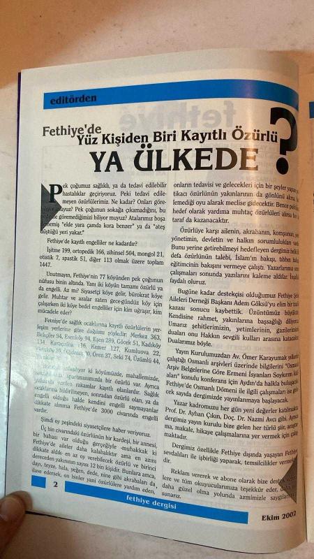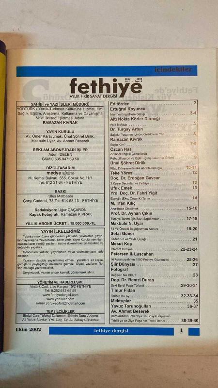 FETHİYE AYLIK FİKİR SANAT DERGİSİ - EKİM 2002 SAYI: 5 RAMAZAN KIVRAK – ERTUĞRUL KOYUNCU – AV. ÖMER KARAYUMAK – ÜNAL ŞÖHRET DİRLİK – MAKBULE N. UYAR – AV. AHMET BESEREK – UĞUR ÇAÇARON – DR. TURGAY ARTUN – ÖZCAN NAS – DOÇ. DR. ERDOĞAN GAVCAR – UFUK EMEK – YRD. DOÇ. DR. FAHRİ YİĞİT – M. İRFAN KILIÇ – PROF. DR. AYHAN ÇIKIN – SEFAİ GÜNER – MESUT KOÇ – DOÇ. DR. REMZİ DURAN – TIMUR FİDAN – YAVUZ TORUNOĞULLARI – BİRDAL CAN TÜFEKÇİ – TAHSİN DURU – ALİ YULUK – YRD. DOÇ. DR. ALİ AKKAYA İSLAM’IN ENGELLİLERE BAKIŞI – ALTINOKTA KÖRLER DERNEĞİ AÇIK MEKTUBU – SAĞLIKLI YAŞAMDA ÖZÜRLÜLERİN YERİ – ZİHİNSEL ENGELLİLERDE EĞİTİMİN ÖNEMİ – KİTAP DÜNYASINDAN – TEKE YÖRESİ – KASIM SEÇİMLERİ VE FETHİYE – EKOLOJİK TARIM – ANA-BABA OLABİLMEK – TÜRKİYE TARIMI İÇİN SAPTAMALAR – 74 YIL ÖNCEKİ BAŞÖĞRETMEN ATATÜRK – SEDEF KIZ VE YAYLA ÇİÇEĞİ – İKİ AVUSTURYALI’NIN 1880 FETHİYE GÖZLEMLERİ – ŞİİR DÜNYASI – FOTOĞRAF – DEĞİŞEN NE OLDU? – SEKİ EŞREF PAŞA TÜRBESİ – TARİHTE BU AY – MEKTUPLAR – - TAM TAKIM EKSİKSİZ 42 SAYFA adlı eser, Kitap > Süreli Yayınlar > Dergiler > Magazin, Moda kategorisinde İkinci El olarak satıştadır.