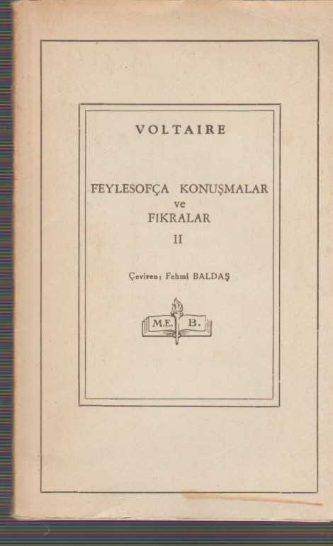 FEYLESOFÇA KONUŞMALARI VE FIKRALAR II, Voltaire tarafından kaleme alınmıştır. Kitap 1948 yılında Milli Eğitim Bakanlığı tarafından yayınlanmıştır. 383 sayfadır. FEYLESOFÇA KONUŞMALARI VE FIKRALAR II adlı eser Türkçe dilindedir.