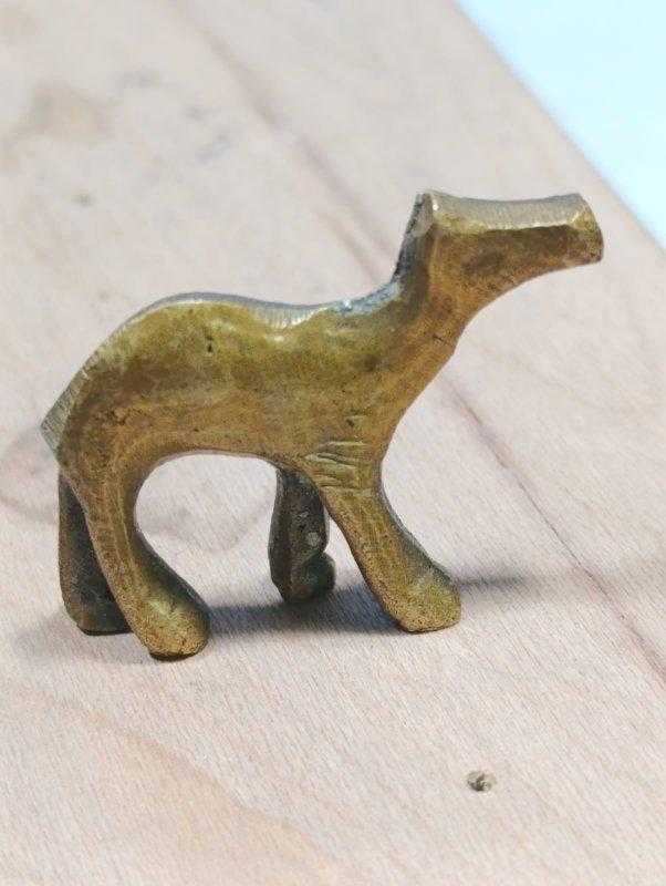 FG20----KÜÇÜK BOY PİRİNÇ METAL DEVE FİGÜRÜ başlıklı antika/koleksiyon objesinin menşei belirtilmemiştir. Objenin ait olduğu dönem bilinmeketedir.