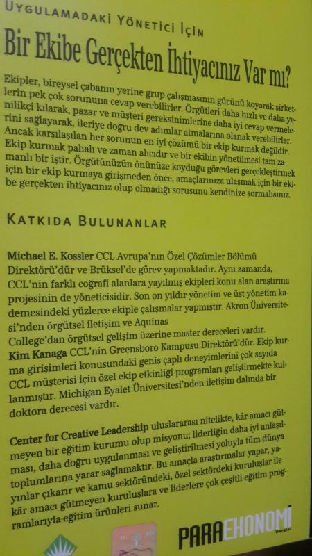 9x32 sayfa. 13.5x21 cm arşivden, yeni gibi Bu rehber kitap serisi, Yaratıcı Liderlik Merkezi'nin (CCL), 1970'teki kuruluşundan bu yana, liderliğin, unvanlar veya rollerle ilgili olmadığına inanan kişi ve kuruluşlarla çalışmalarından elde ettiği pratik bilgilerden yararlanmaktadır. Serinin amacı, yöneticilere, gelişimsel bir görevi tamamlama veya bir liderlik sorununu çözme konusunda özel tavsiyeler sunmaktır. Michael E. Kossler, CCL Avrupa'da Özel Çözümler Müdürü, Kim Kanaga, CCL'nin Greensboro Kampüsü direktörü. Orijinal isimleri: Do You Really Need a Team? / How to Form a Team: Five Keys to High Performance / Managing Conflict your Boss / Learning from Life / Keeping your Career on Track / Feedback that Works 1-2 / Ongoing Feedback / Giving Feedback to Subordinates