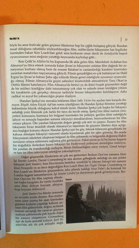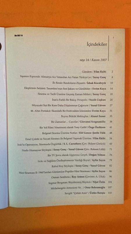 FİLM DERGİSİ - KASIM 2007 - İSHAK KOCABIYIK - EVRİM KAYA - NEZİH COŞKUN - YUSUF GÜVEN - AYLİN SAYIN - AHMET SONER - GIOVANNI SCOGNAMILLO - ÖZGE ÖZDÜZEN - ELİF GENCO - ŞERİFE TÜLÜ - S. L. CARRUTHERS - BÜLENT GÖRÜCÜ - NADİR HUMAYUN - ROKSEN LÜLÜ - DOĞAN YILMAZ - ROY ARMES - A. UFUK - NİJAT ÖZÖN - ONUR BEHRAMOĞLU - ÜSTÜN BARIŞTA YAŞAMIN KIYISINDA - BANDO - PERSEPOLIS - MİYAZAKİ SİNEMASI - BELGESEL SİNEMA DOSYASI - GÜNDELİKÇİ - UYGUNSUZ GERÇEK - IRAK BELGESELLERİ - HİNT SİNEMASI II - BOYNU BÜYÜK MEKTUPLAR - ÇİRKİN ARES - CAZ ÜZERİNE - TONİ GATLİF - ANTONİONİ - BERGMAN - SEMBENE YUMURTA : SAADİT IŞIL AKSOY - ÖZGÜR EKEN - SEMİH KAPLANOĞLU - ORÇUN KÖKSAL - NAZ ERAYDA YAŞAMIN KIYISINDA : FATİH AKIN - NURSEL KÖSE - TUNCEL KURTİZ - ANDREW BIRD MUTLULUK : ÖZGÜ NAMAL - MURAT HAN - ZÜLFÜ LİVANELİ - ORÇUN KORLUCA MÜLTECİ : HALİL ERGÜN - REİS ÇELİK SAKLI YÜZLER : HANDAN İPEKÇİ İYİ SENELER LONDRA : BERKUN OYA ŞARK VAATLERİ : DAVID CRONENBERG İŞTE ÖZGÜR DÜNYA : KEN LO - 112 SAYFA adlı eser Türkçe dilindedir.