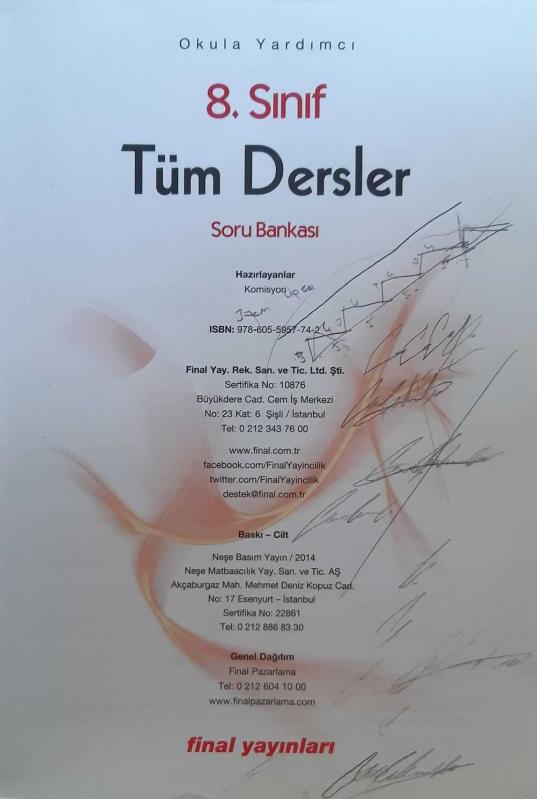 FİNAL YAYINLARI, 8. SINIF TÜM DERSLER SORU BANKASI adlı eser, Kitap > Sınav ve Ders Kitapları > Sınavlara Hazırlık > Yüksek Öğretime Geçiş (YKS, TYT, AYT) kategorisinde İkinci El olarak satıştadır.