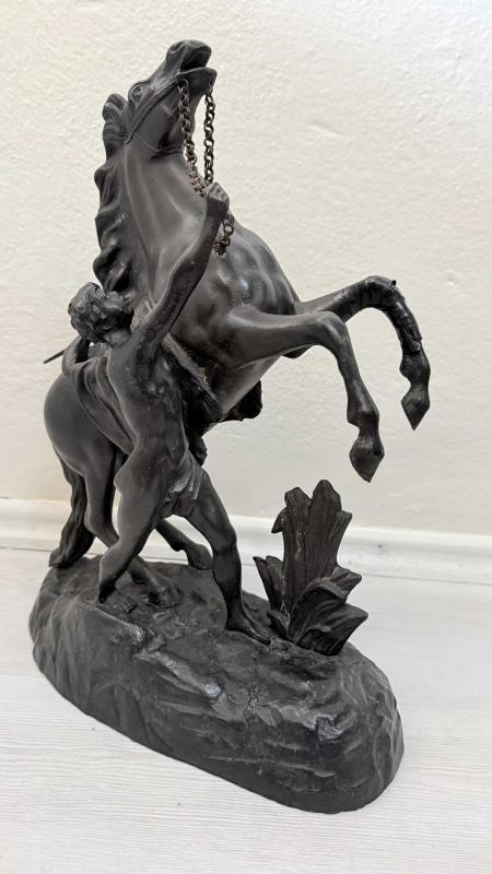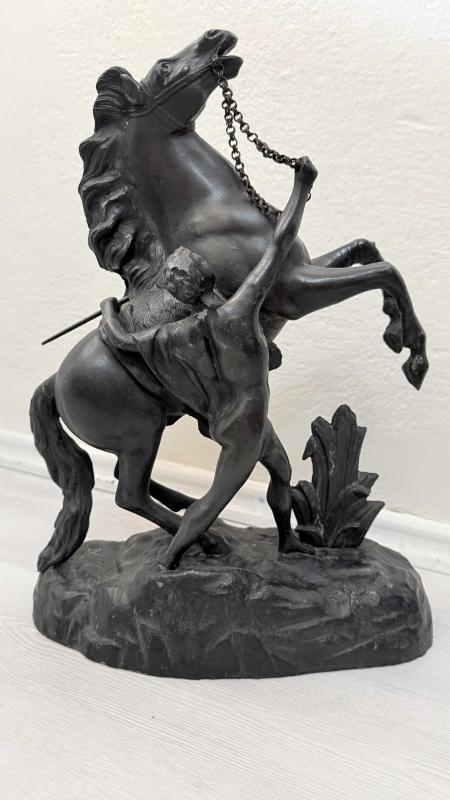Metal tutya karışımı fıransız damgalı dönem 1950 60 LAR dönemi at terbiyecisi at 🐴 heykeli aykırı formda dev boy da kusursuz koleksiyon dekor görsel şöleni muhteşem bi sanat eseri