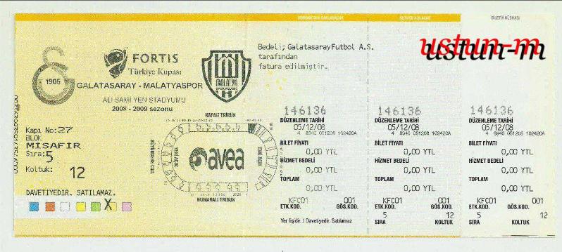 FORTIS T.KUPASI GALATASARAY-MALATYASPOR MAÇ BİLETİ..., en son 5 ay önce güncellenmiştir.