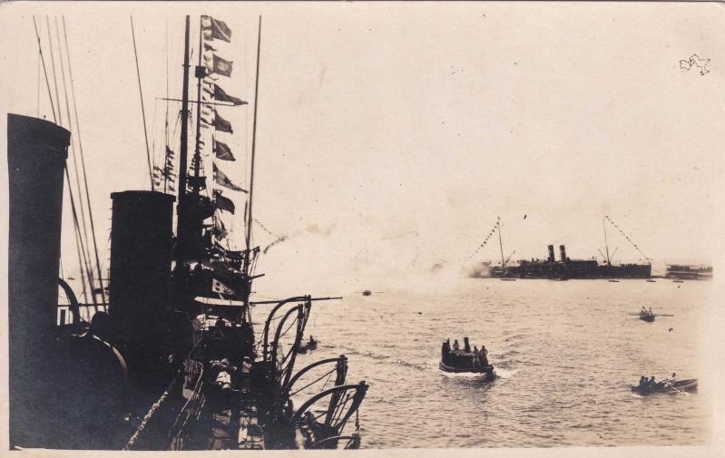 [FOTOĞRAF / İŞGAL İSTANBUL'U (1919-1922)] Boğazda işgal gemileri. Çok sayıda bayrakları dalgalanan iki adet işgal gemisi görülmektedir, en son 7 ay önce güncellenmiştir.