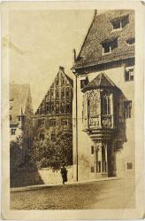 Avrupa'da Oryantal Mimari Cumbalı, vitray pencereli ve heykel rölyefli Avrupa yapı. 15x10 cm, sepya tonlu.