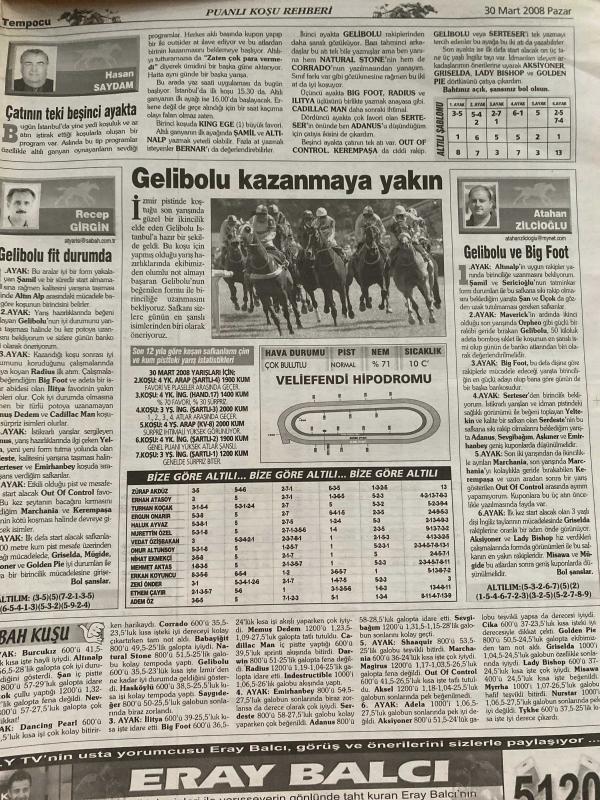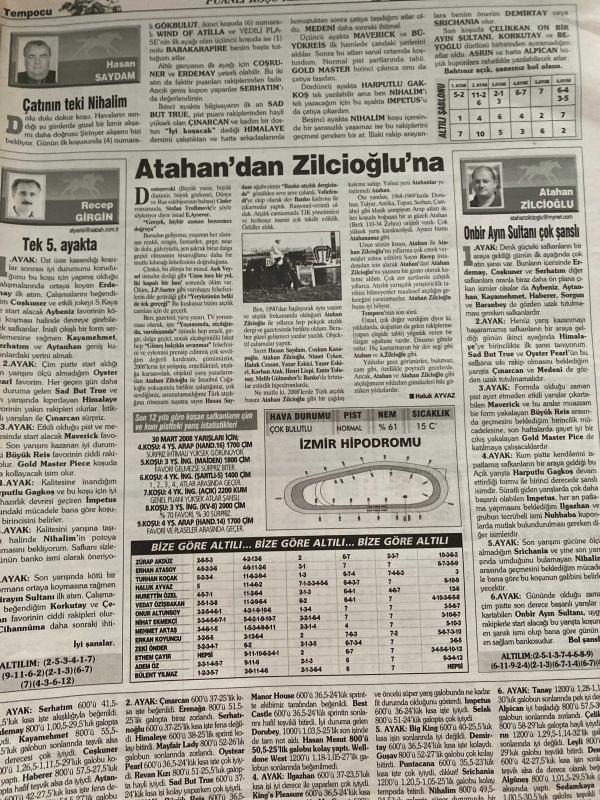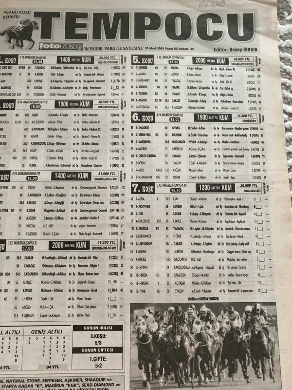 FOTOMAÇ TEMPO GANYAN GAZETESİ DOĞUM GÜNÜ HEDİYESİ- 30 MART 2008 -Hasan Saydam - Recep Girgin - Atahan Zilcioğlu - Eray Balcı - Sinan Güney - George Thomas - Murat Gündüzeli - Ali Ay - AY Karan - Serdar Pedükcoşkun - Orhan Karabıyık - Yusuf Yavaşcan - Adnan Feleh - Ahmet Erkoç - Melih Gürsan - Ali Aydöğdu - Kement Avcısı Ferit Akinci - Ergun Onarır - Çatının teki beşinci ayakta - Gelibolu fit durumda - Gelibolu kazanmaya yakın - Gelibolu ve Big Foot - Sabah Kuşu - Çatının teki Nihalim - Tek 5. ayakta - Atahan’dan Zilcioğlu’na - Onbir Ayın Sultanı çok şanslı - Mermer Koşusu’nu Hop Comas kazandı - Arap taylarının ‘En Güzeli’ seçildi - Pazar İzmir programının yorumu - Harputlu Gaggos tek - H.Gaggos ve Nihalim - Maverick kazanır - Şirinyer’de miting günü adlı eser Türkçe dilindedir. Eserin içeriğinde Türkçe dilinde bölümlere de yer verilmektedir.