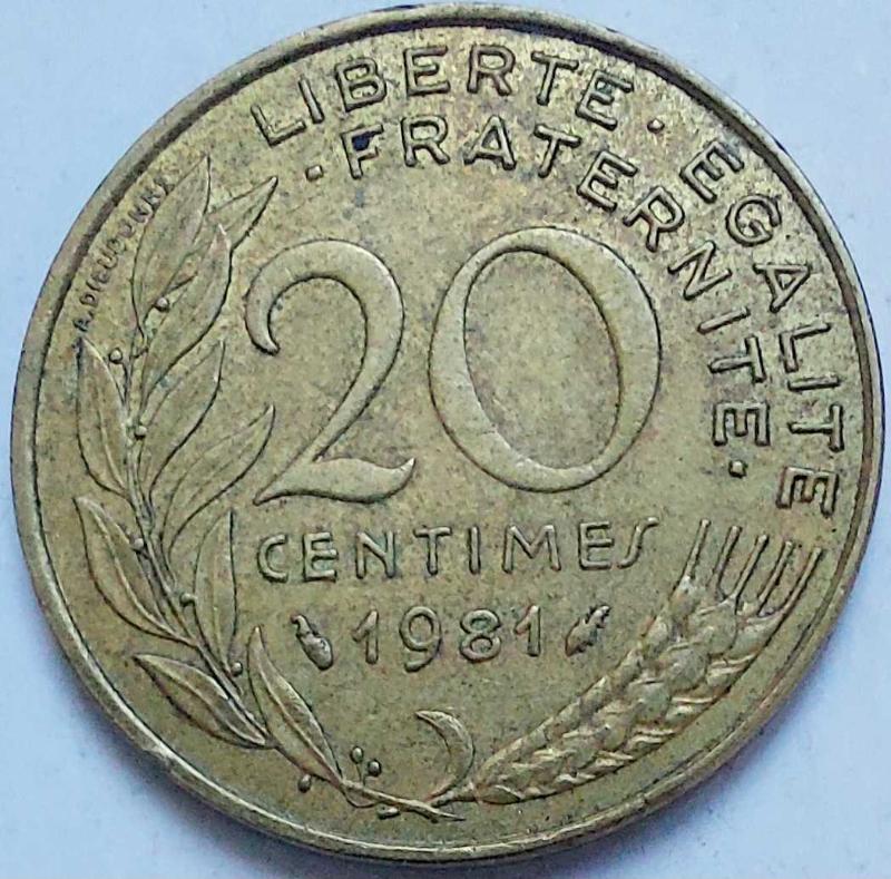 FRANSA 20 CENTİM 1981 Alüminyum bronz ÇÇT FOTOĞRAFTAKİ PARA YOLLANACAKTIR. 4