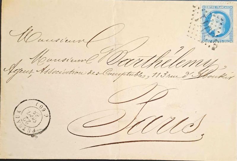FRANSA BADADİ MEKTUP 3041 DAMGALI- GİYOTİN KESİM III. NAPOLYON PULLU ZARF.-1868 . PARIS VARIŞ DAMGALI. ÜRÜN GÖRÜLDÜĞÜ GİBİDİR.
