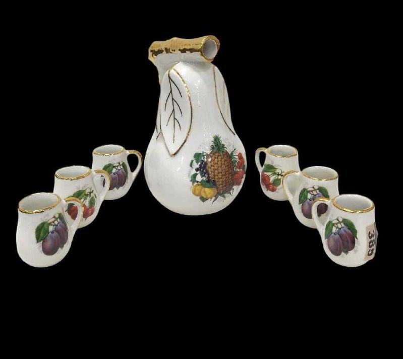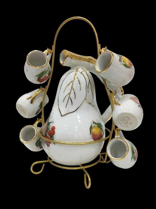 FRANSIZ PORSELEN ÇAY TAKIMI FRANSIZ. PORCELAINE DE LUXE İMALAT DAMGALI. ARMUDİ FORMLU DEMLİĞİN TUTAMAĞI, ARKA KISIMDAN ÜST KISMINA DOĞRU UZAMAKTA OLUP AYKIRI FORMDADIR VE ALTIN YALDIZ İŞÇİLİKLİDİR. 6 FİNCAN, 1 DEMLİK VE STAND. FİNCAN H 5 CM. DEMLİK H 18 CM., bir ay önce kitantik’te satışa sunulmuştur.