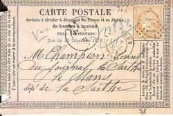 FRANSIZ PUL FRANCE et en ALGERIE 1873 WITH STAMP OF 15centimes