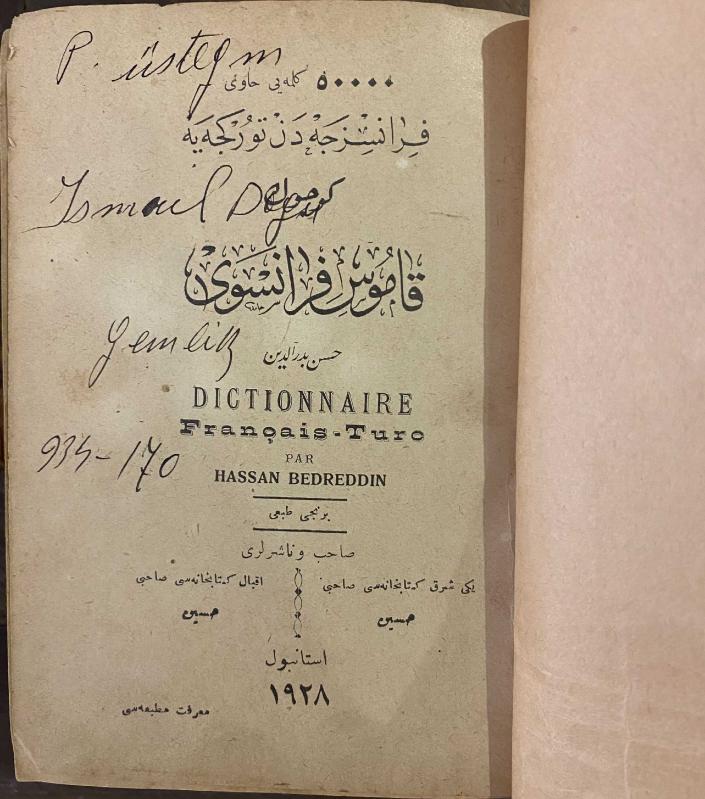 FRANSIZCADAN TÜRKÇEYE KAMUSU FRANSEVİ-OSMANLICA SÖZLÜK 1928 HASAN BEDRETTİN ,1.Cİ BASKI adlı eser Türkçe dilindedir.
