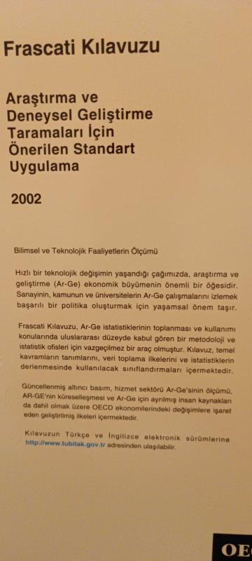 Kitap 2002 yılında Tübitak tarafından yayınlanmıştır. FRASCATİ KILAVUZU - ARAŞTIRMA VE DENEYSEL GELİŞTİRME TARAMALARI İÇİN ÖNERİLEN STANDART UYGULAMA adlı eser Türkçe dilindedir.