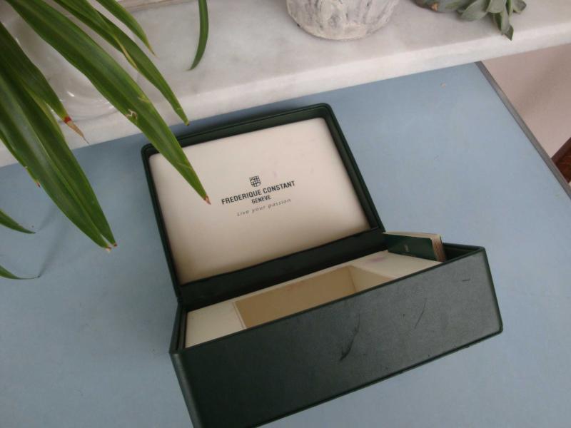 " Vintage " FREDERIQUE CONSTANT GENEVE Saat Kutusu " Ürün kullanılmış olup gayet İYİ kondisyondadır ,, kırık-kopuk yoktur - Dış deri kaplamada köşelerde hafif soyulmalar ve iç beyaz kaplamada hafif lekeler mevcut.."